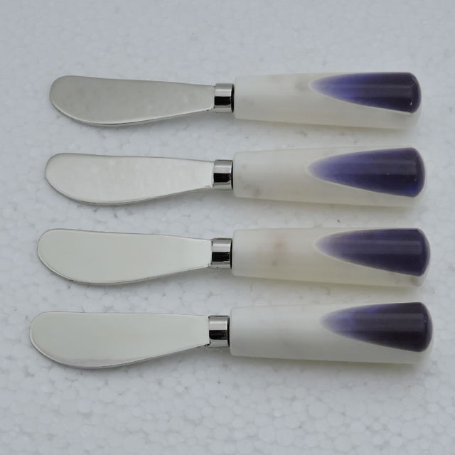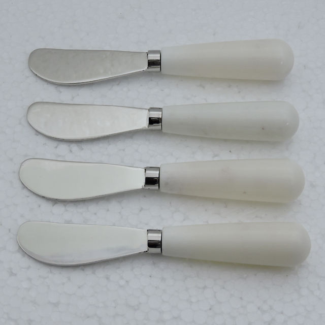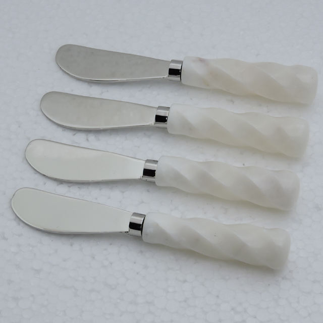 เรซินอเนกประสงค์และที่จับหินหินอ่อนสีขาวและสเตนเลสสตีลพร้อมชุดเนยชุบเงิน4ชิ้น