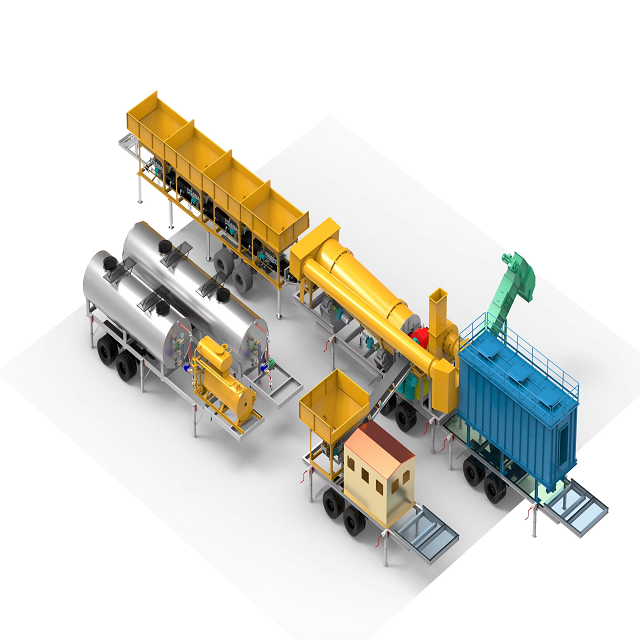 PLC, เครื่องยนต์, แบริ่ง, เกียร์, มอเตอร์, ปั๊ม, ถังเก็บความเย็น, กลองเครื่องเป่า, เครื่องผสม pugmill เพลาคู่, หน่วยควบคุมมลพิษ, ถังเก็บน้ำมันดิน, เตา