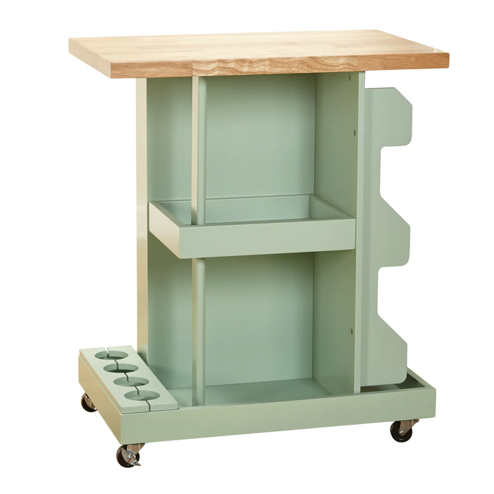 โต๊ะรับประทานอาหารทำจากไม้โอ๊คแข็งอเนกประสงค์ตู้เก็บของบนเกาะห้องครัวพร้อมรถเข็นสี่ล้อ8ชั้นวางเป็นมิตรกับสิ่งแวดล้อม