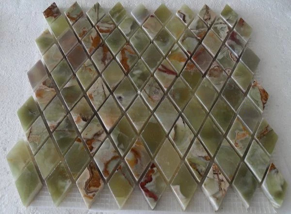 กระเบื้องโมเสคเคลือบเงาสีเขียวโอนิกซ์หลายสีเขียวคอลเลกชันหินธรรมชาติสีเขียวโอนิกซ์สีเขียวเข้ม