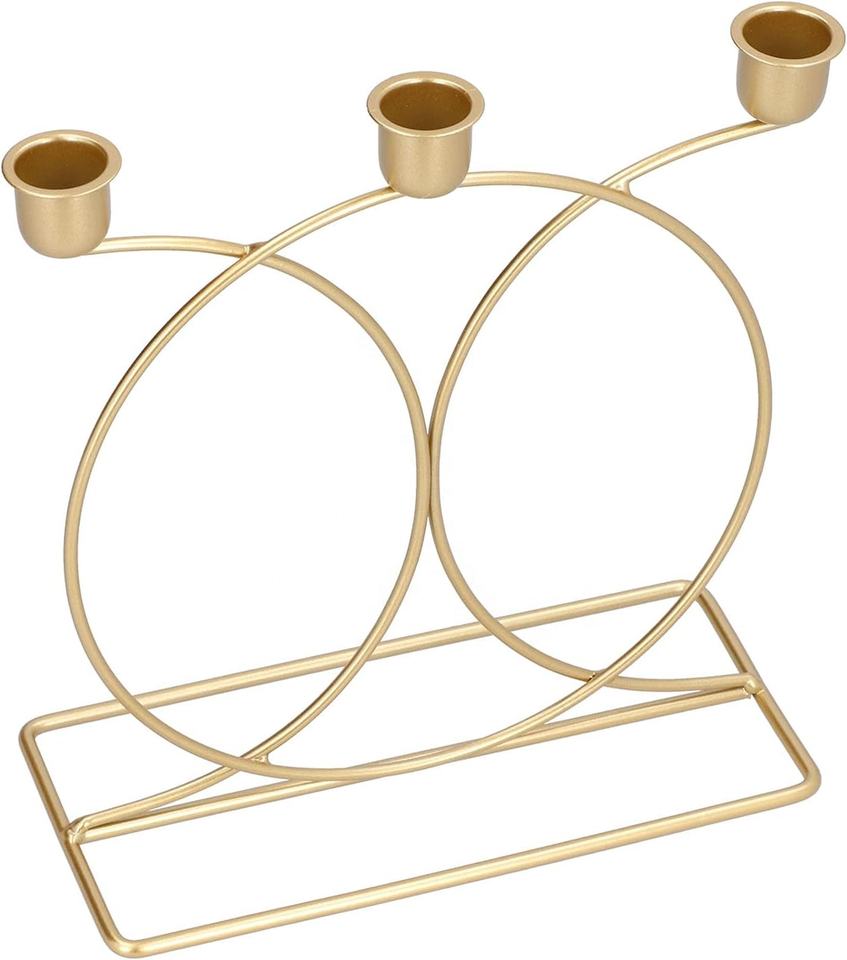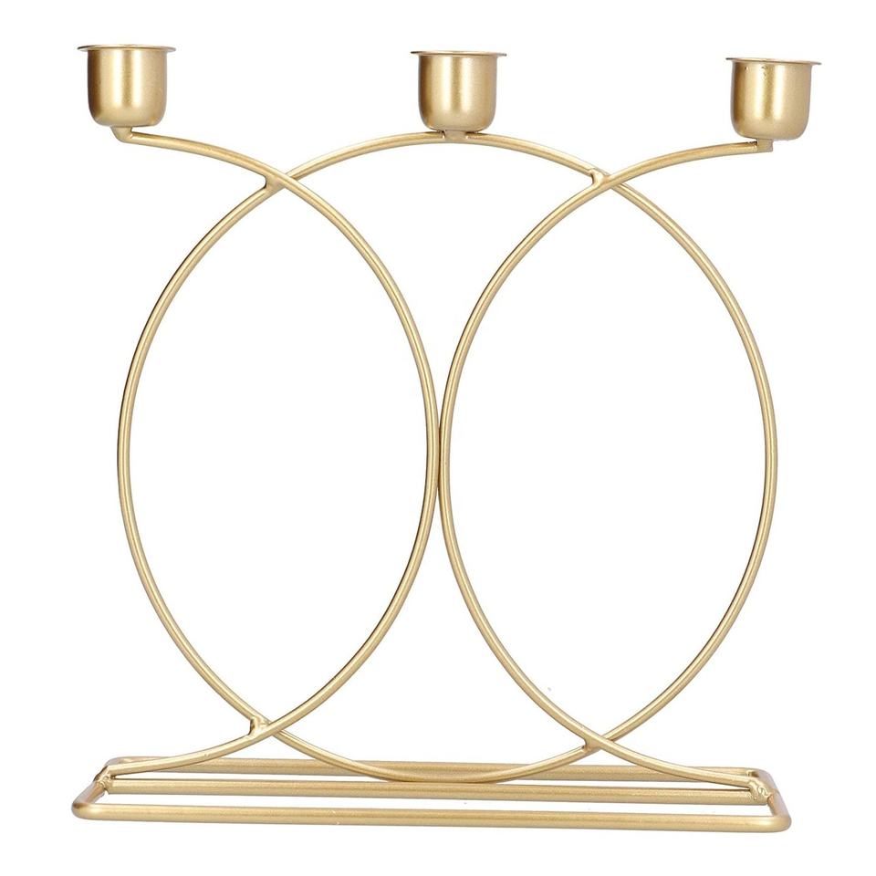 ที่วางเทียนสามหัวแบบหลายหัวที่ทนทานทำด้วยมือเป็นโลหะสีทองตกแต่งเชิงเทียนฐานวงกลมเรียวสำหรับตกแต่งบ้าน