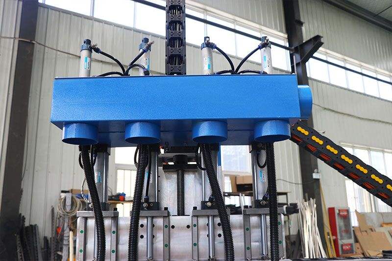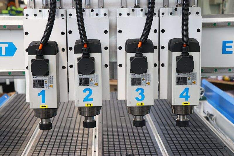 เครื่องแกะสลักซีเอ็นซีไม้แบบหลายหัว 1325 4 แกน พร้อมมอเตอร์แกนหมุน 4x3.5 กิโลวัตต์ ระบบ Syntec PLC สำหรับโรงงานเฟอร์นิเจอร์