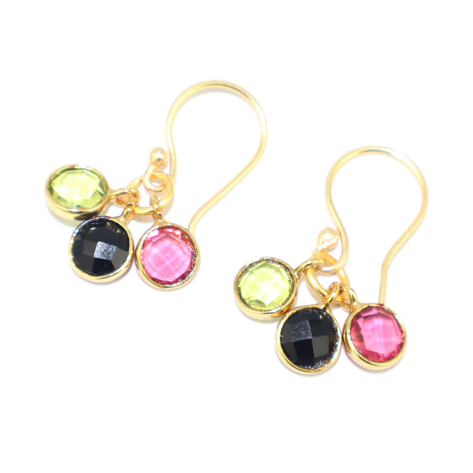 ต่างหูห้อยประดับด้วยควอตซ์หลากสีสามเม็ด ชุบทอง 22K ดีไซน์ทันสมัย เหมาะสำหรับงานปาร์ตี้ สำหรับสาวๆ ผู้หญิง งานแฮนด์เมด ขายส่งจำนวนมาก