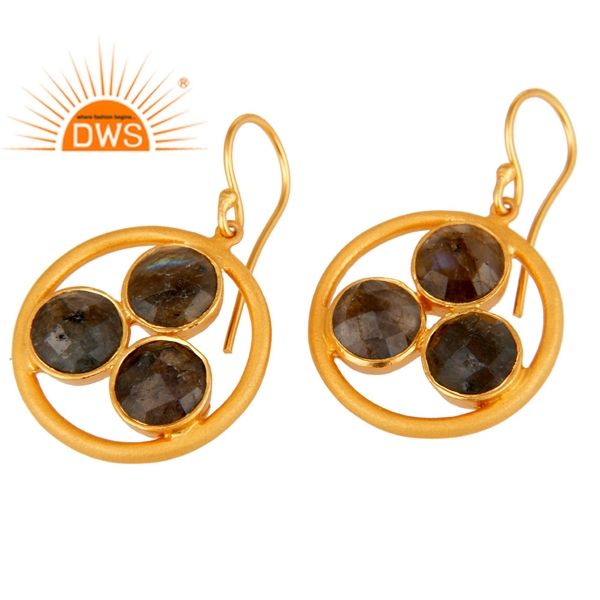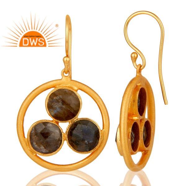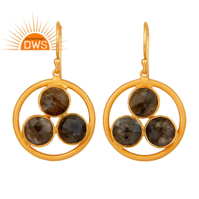 ต่างหูพลอยลาบราโดไรต์หลายเม็ด ชุบทอง 18k เครื่องประดับขายส่ง ต่างหูเงินแท้ 925 ทรงวงกลม แบบคลาสสิก