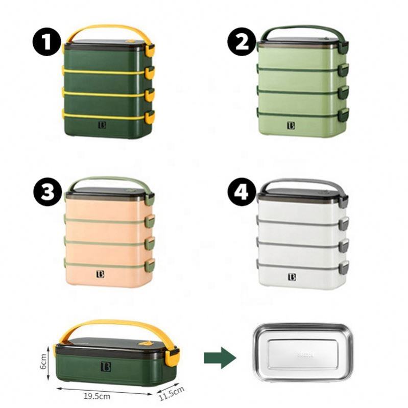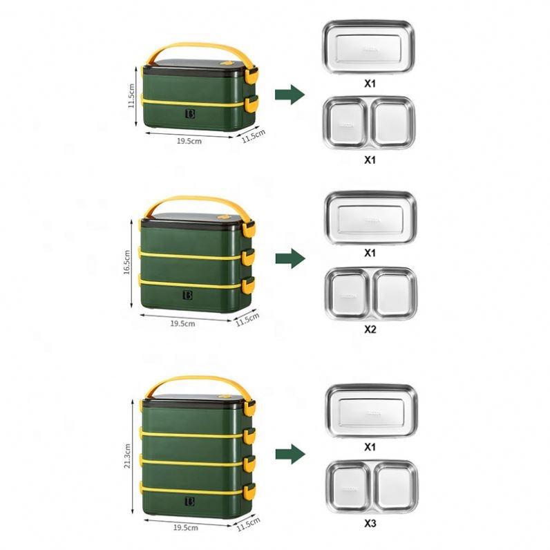 เบนโตะสี่เหลี่ยมสแตนเลส304หลายชั้นกล่องอาหารกลางวันความจุ1-3L รักษาความสดแบรนด์ตามสั่ง