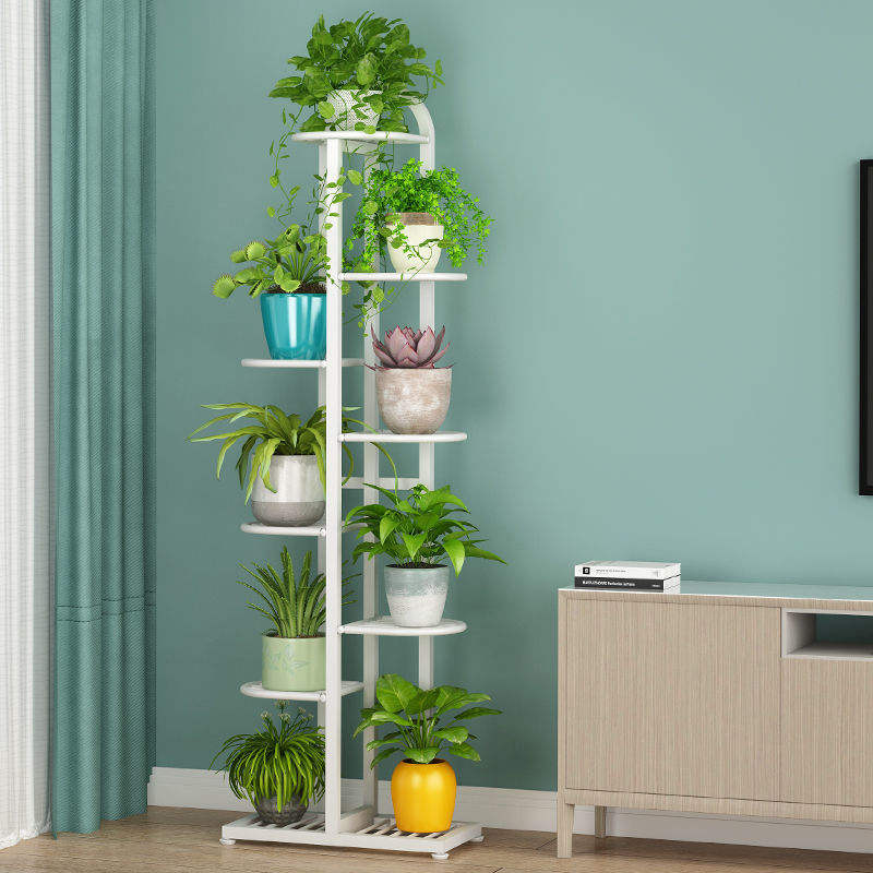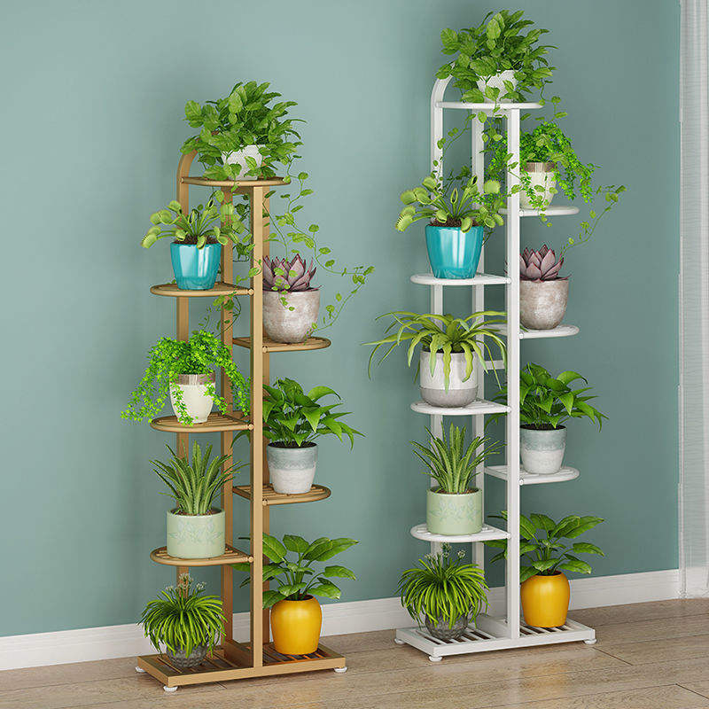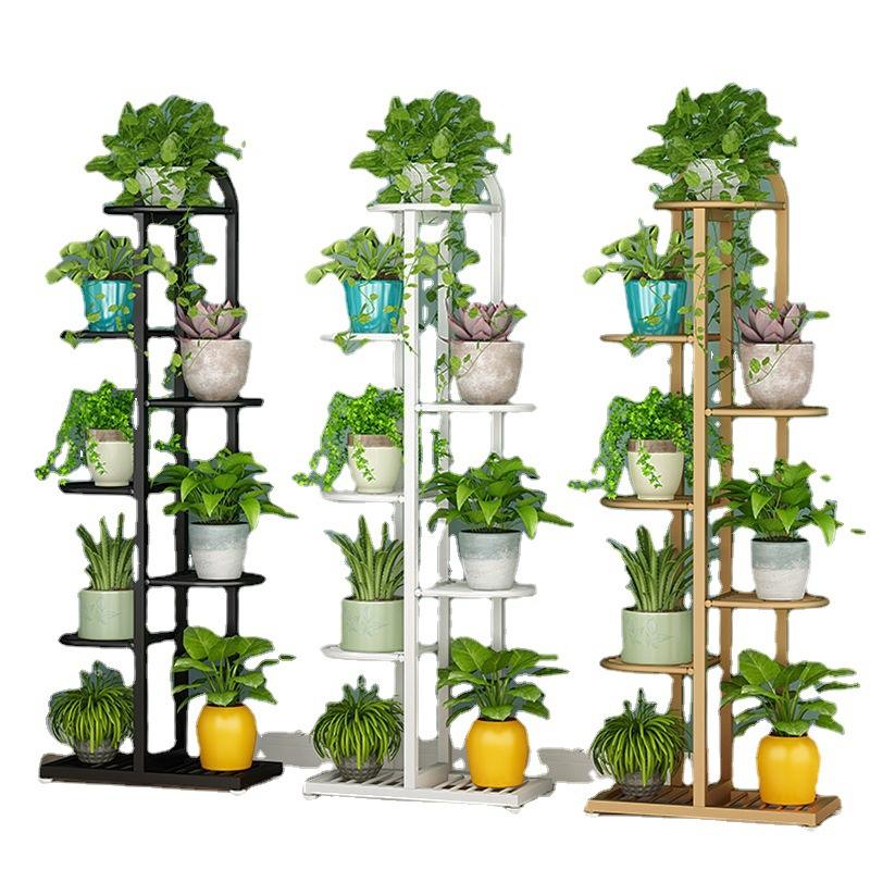 ชั้นวางดอกไม้หลายชั้นแบบตั้งพื้น ใช้ได้ทั้งภายในและภายนอกอาคาร ดีไซน์ประหยัดพื้นที่ เหมาะสำหรับห้องนั่งเล่น ระเบียง ปลูกต้นไม้ เช่น ต้นโพธิ์