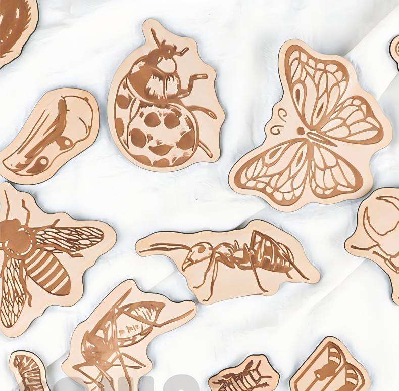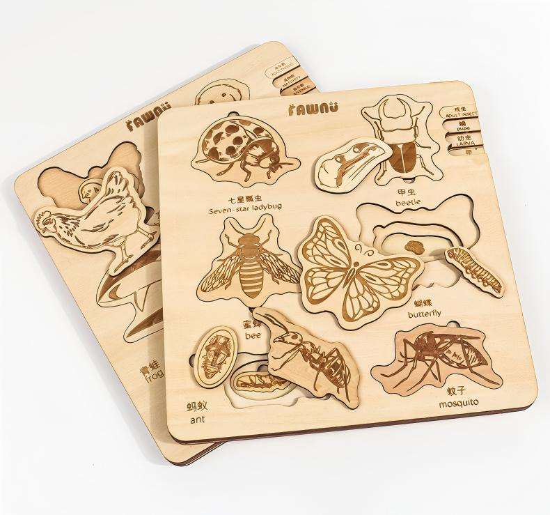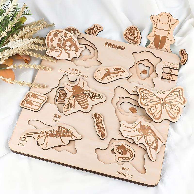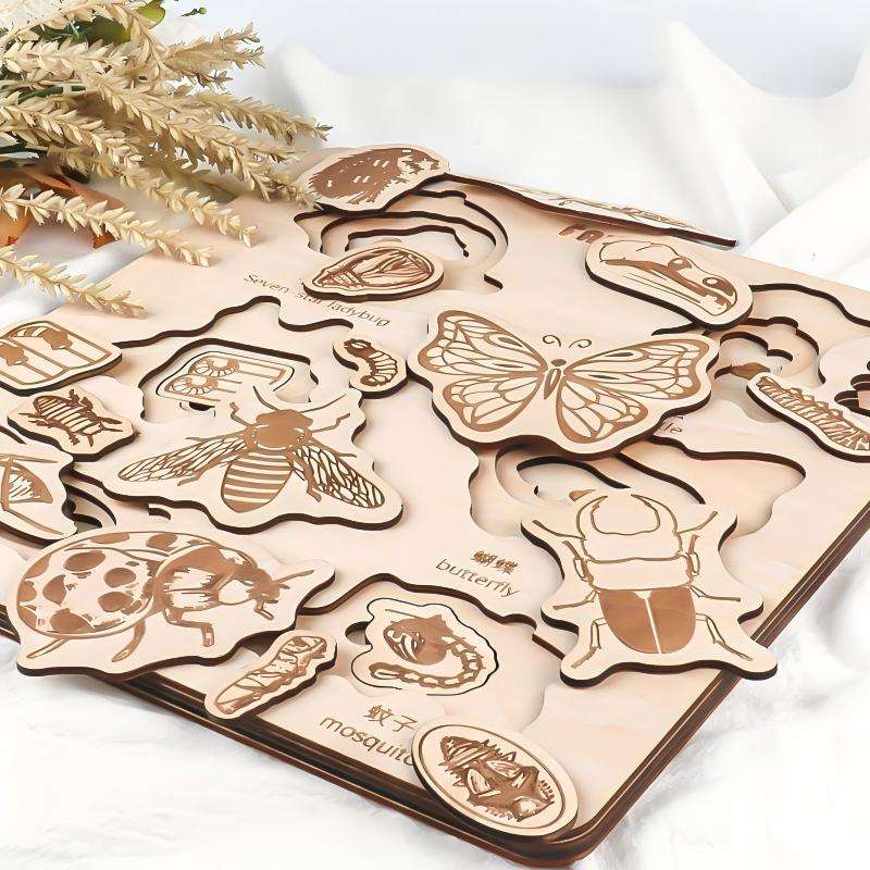 ปริศนาการเรียนรู้แมลงแบบหลายชั้น - ของเล่นไม้เพื่อการศึกษาสำหรับเด็กเพื่อการเรียนรู้เบื้องต้นเกี่ยวกับกายวิภาคของแมลงและวงจรชีวิต