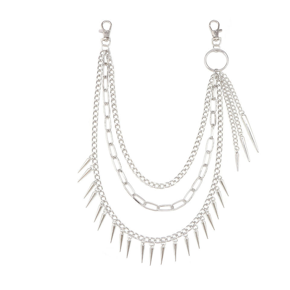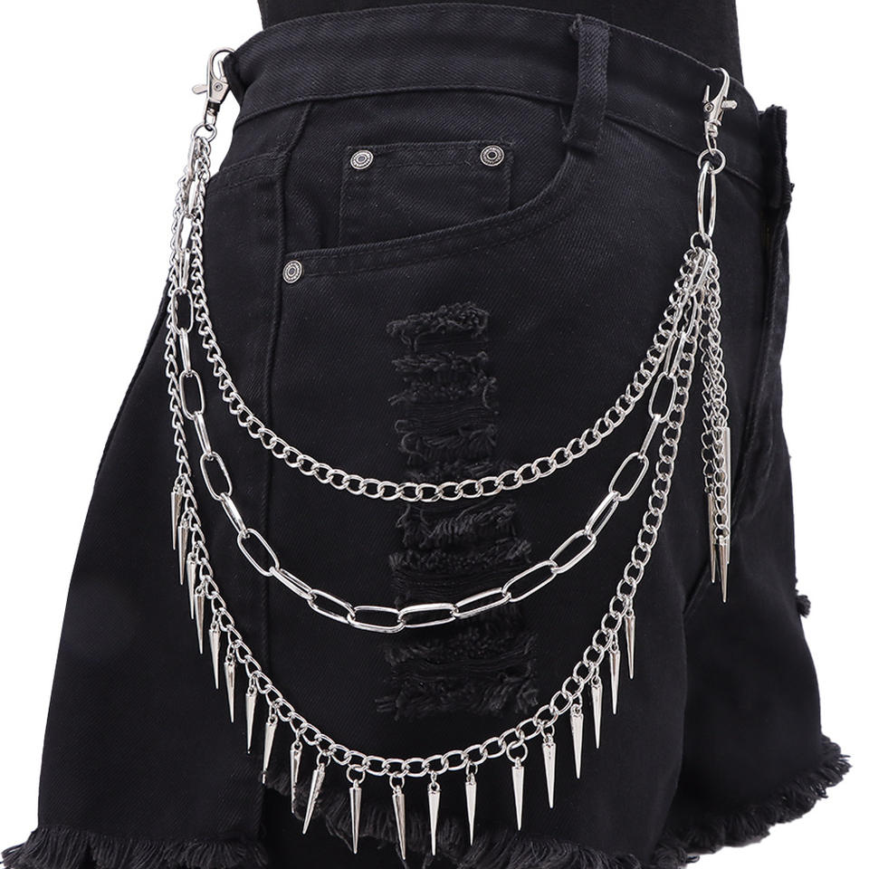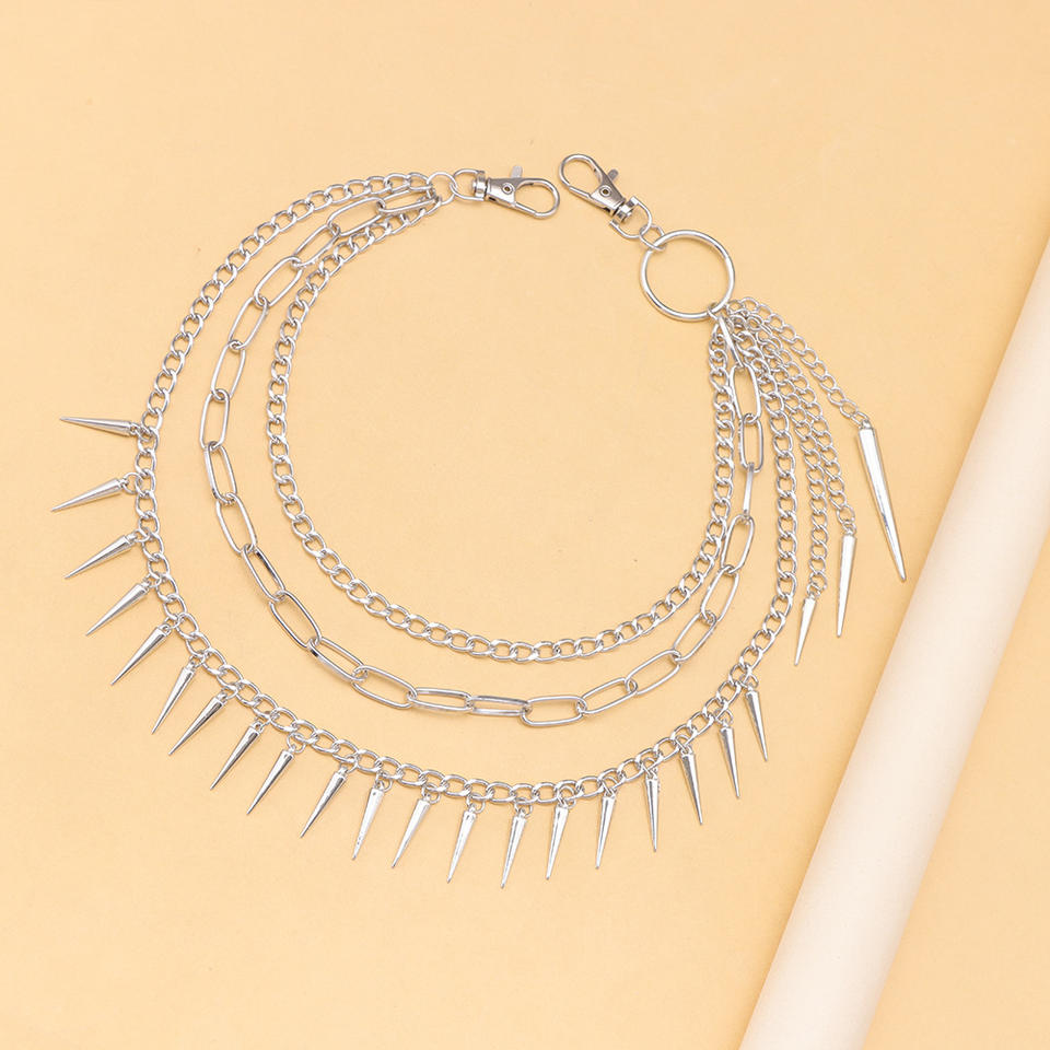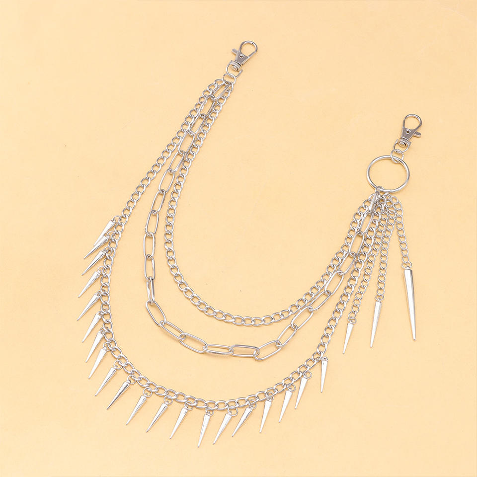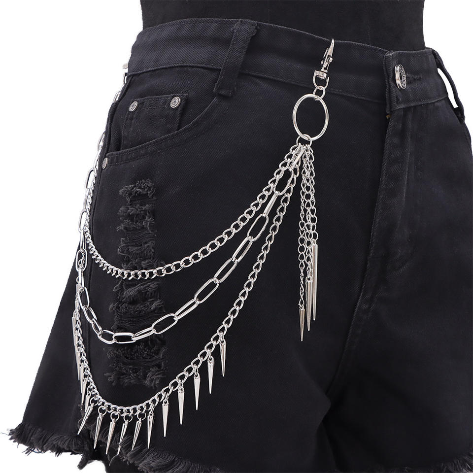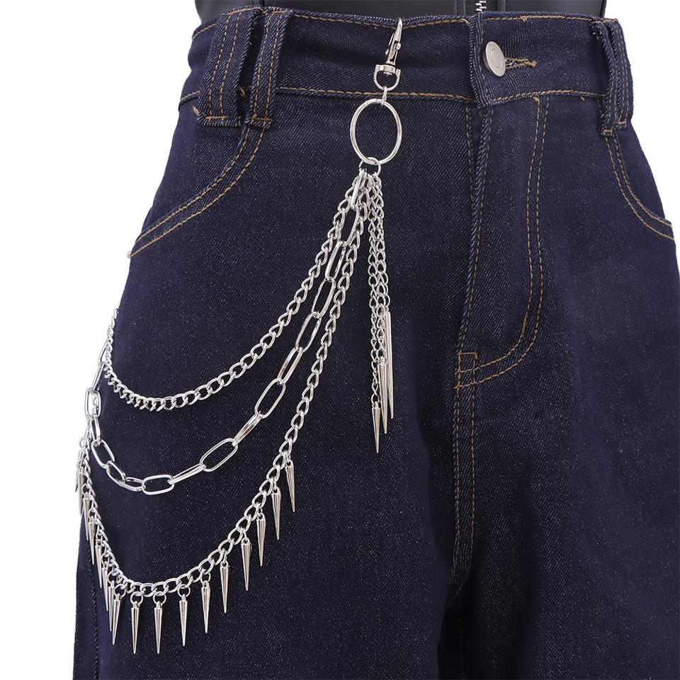 โซ่คล้องกางเกงโลหะหลายชั้นแบบมีหนามแหลม สไตล์ฮิปฮอป สำหรับงานปาร์ตี้ เครื่องประดับแฟชั่น