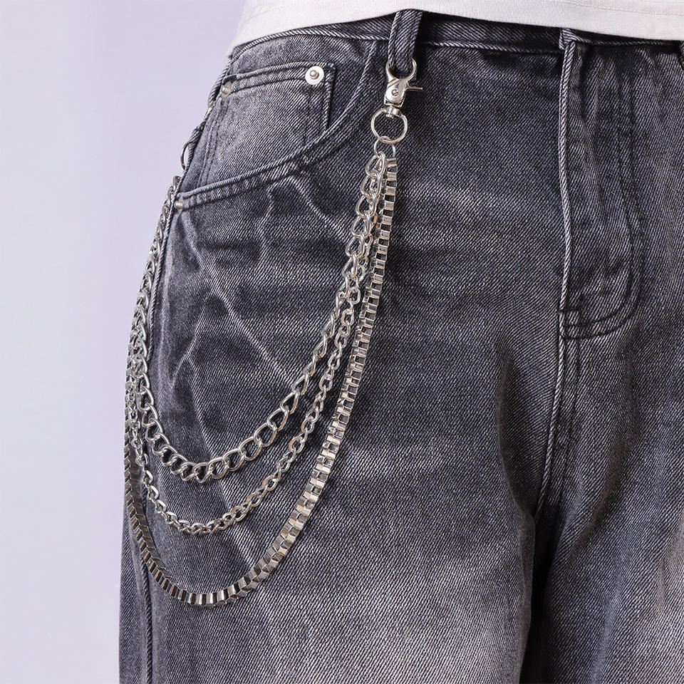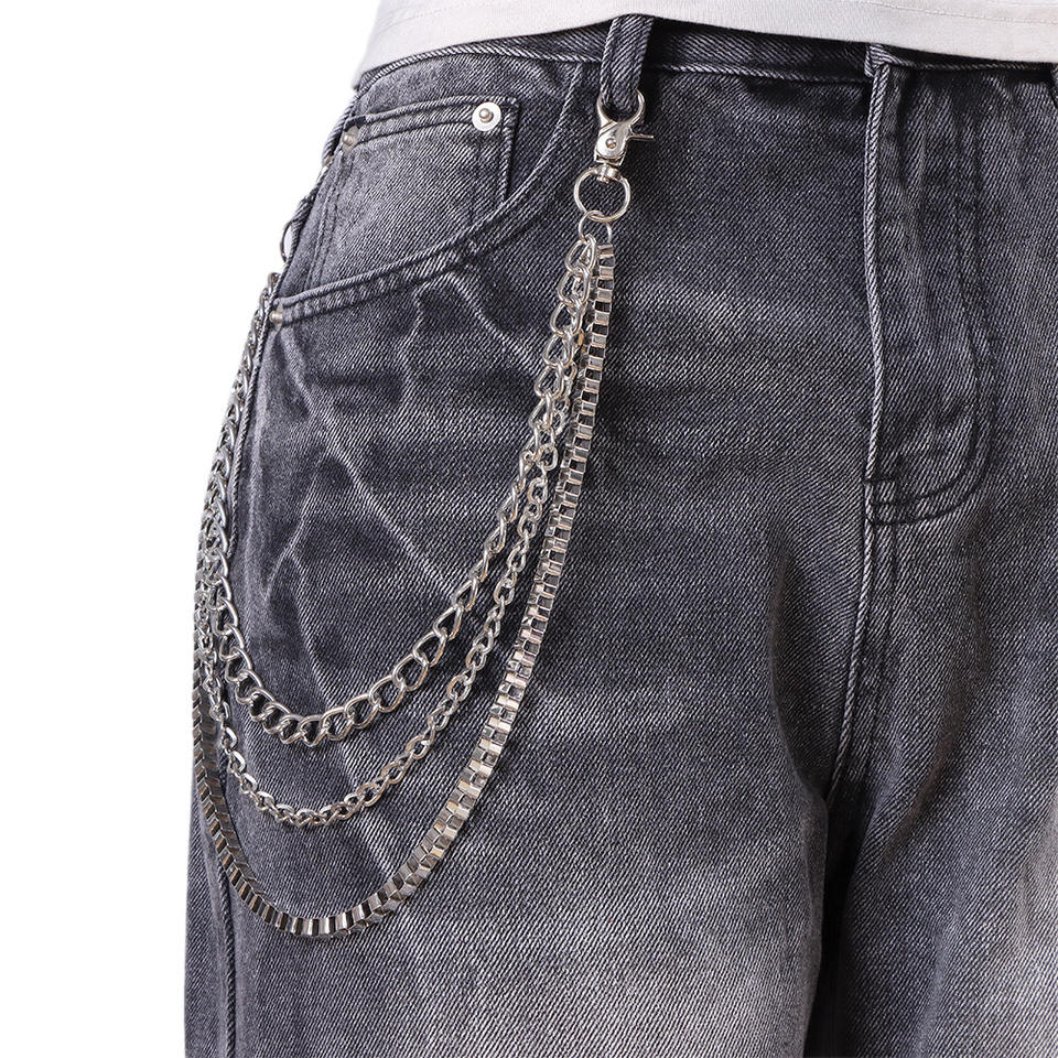 โซ่คาดเอวโลหะหลายชั้นสำหรับกางเกงยีนส์ฮิปฮอปสตรีทแดนซ์เครื่องประดับแฟชั่นเงินทิเบตสไตล์ลำลอง