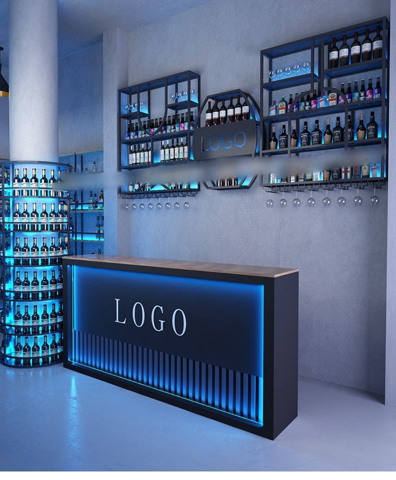 ชั้นวางไวน์ขาวและแดงแบบหลายชั้นเฟอร์นิเจอร์ในบ้านเคาน์เตอร์บาร์เรืองแสงสำหรับวางไวน์เบียร์