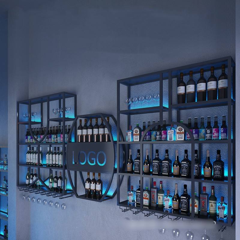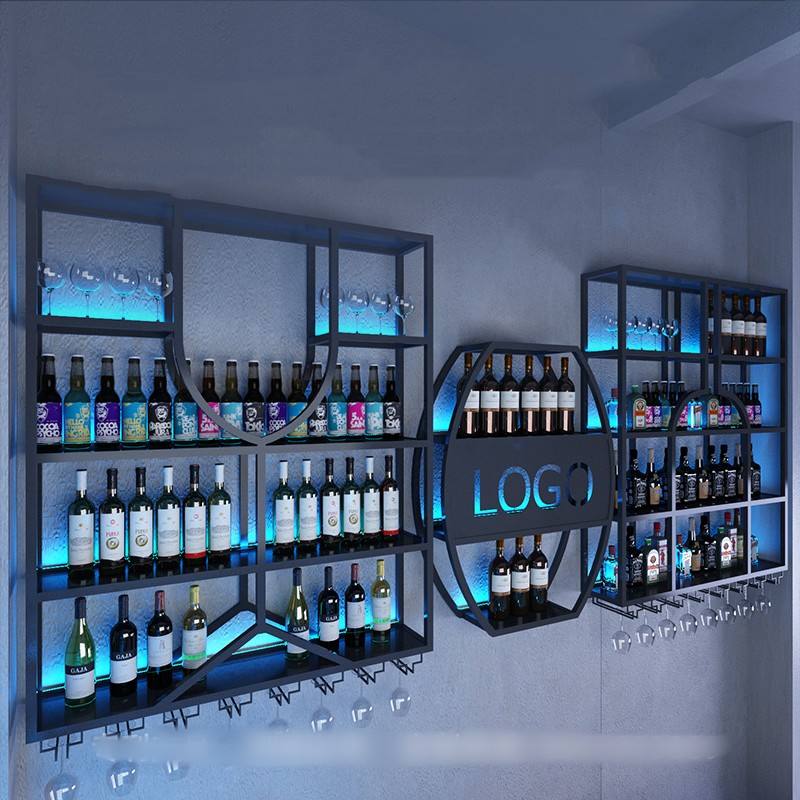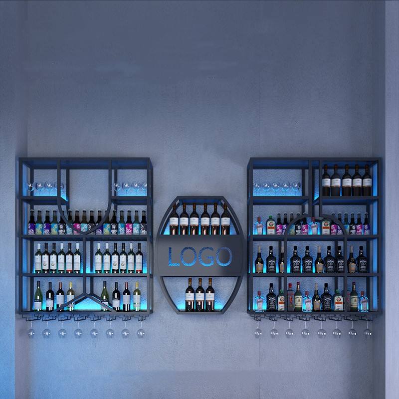 ชั้นวางไวน์ชั้นวางไวน์โลหะสำหรับตกแต่งผนังไฟ LED