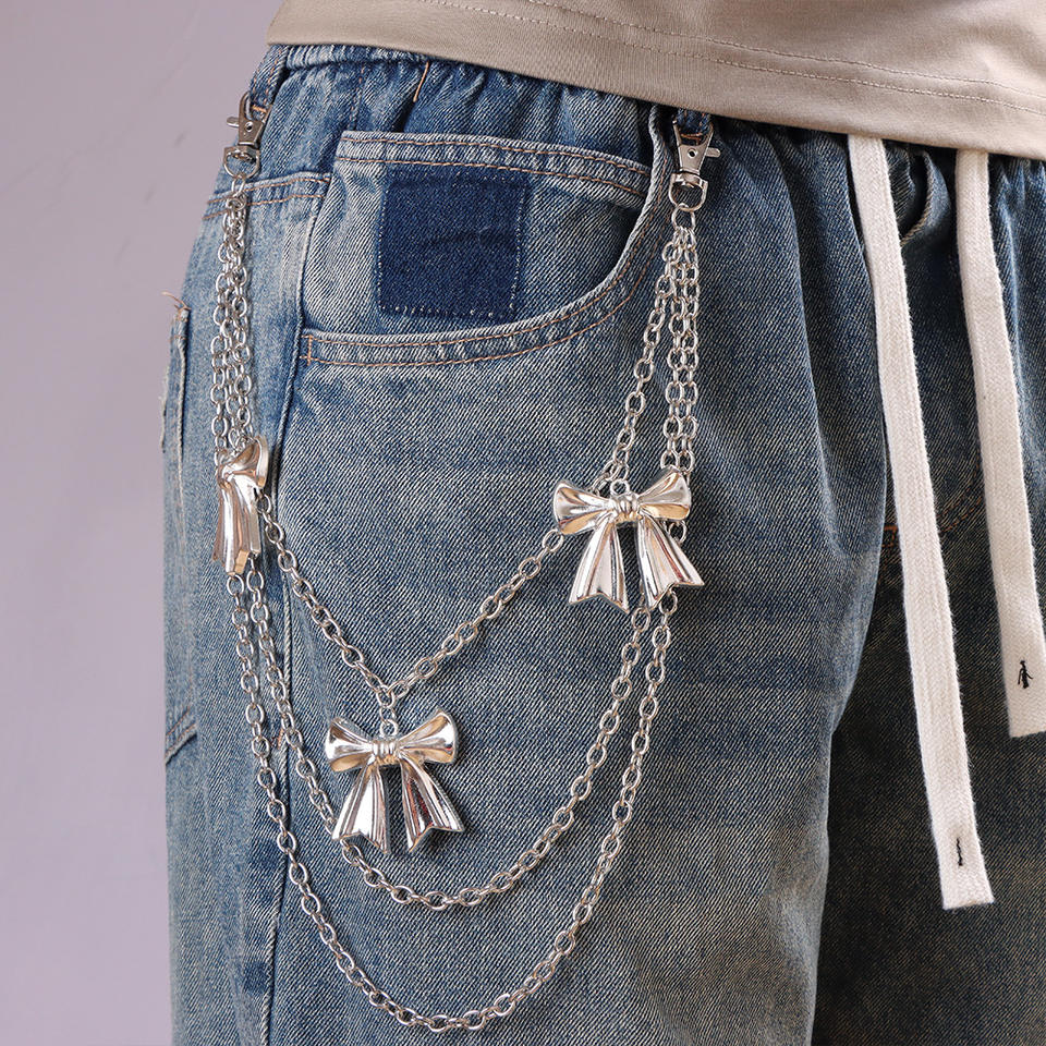 จี้โลหะหลายชั้นรูปโบว์ สายคล้องกางเกง โลหะผสมสังกะสี สำหรับทุกเพศ สไตล์ลำลอง สายคาดเอว ฮิปฮอป ทันสมัย สไตล์ยุโรปอเมริกัน
