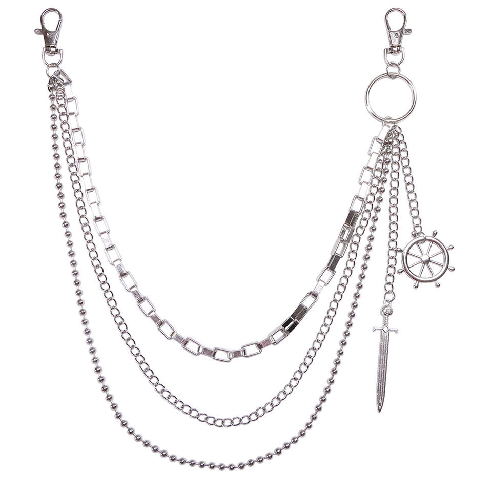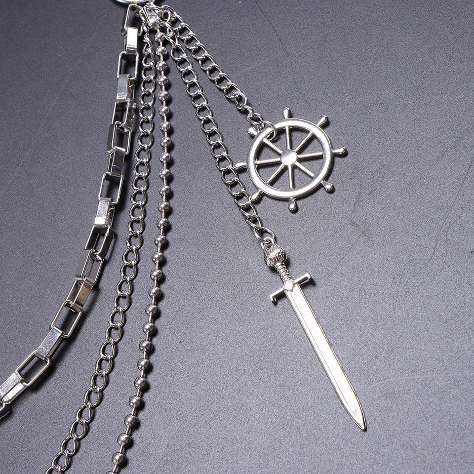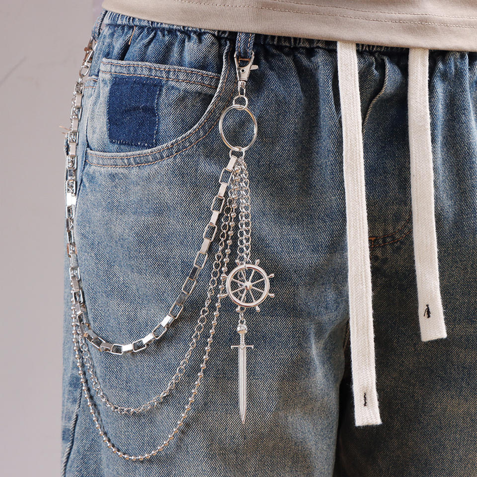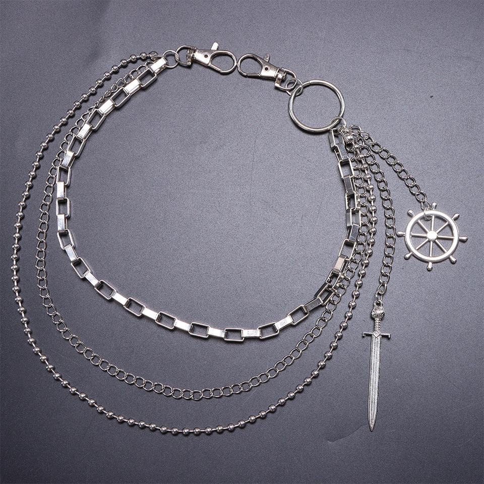 จี้ดาบล้อเรือหลายชั้น สร้อยคล้องกางเกง เงินทิเบต สร้อยคาดเอวสำหรับใส่ทุกวัน สไตล์ฮิปฮอป