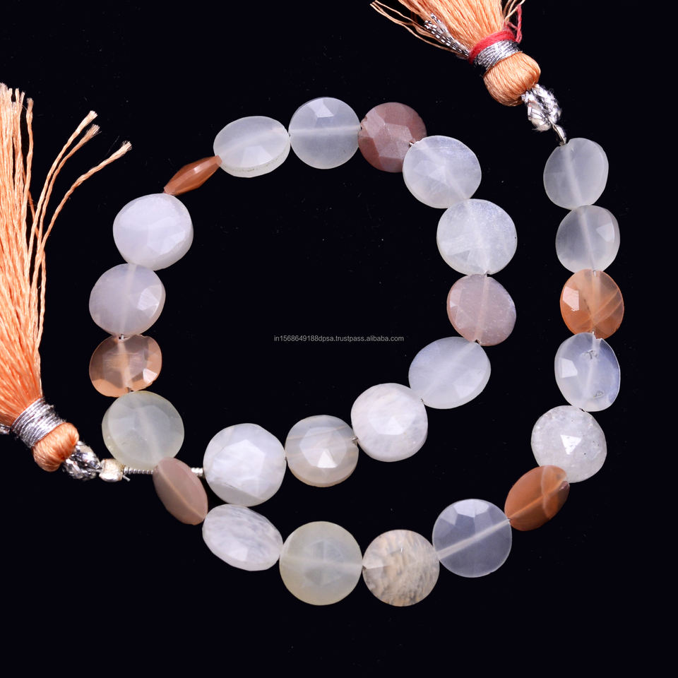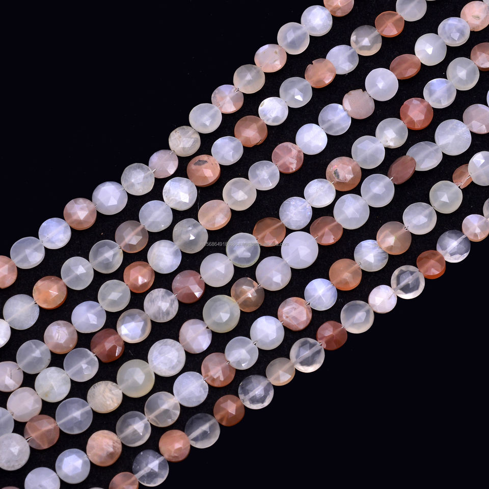 ลูกปัดมูนสโตนหลายเม็ดเครื่องประดับรูปเหรียญสุดฮิตทันสมัยสายหินขนาด8นิ้ว7x7ถึง10x10มม. สไตล์เหลี่ยมเพชรพลอยเหมาะสำหรับสินค้าเครื่องประดับ