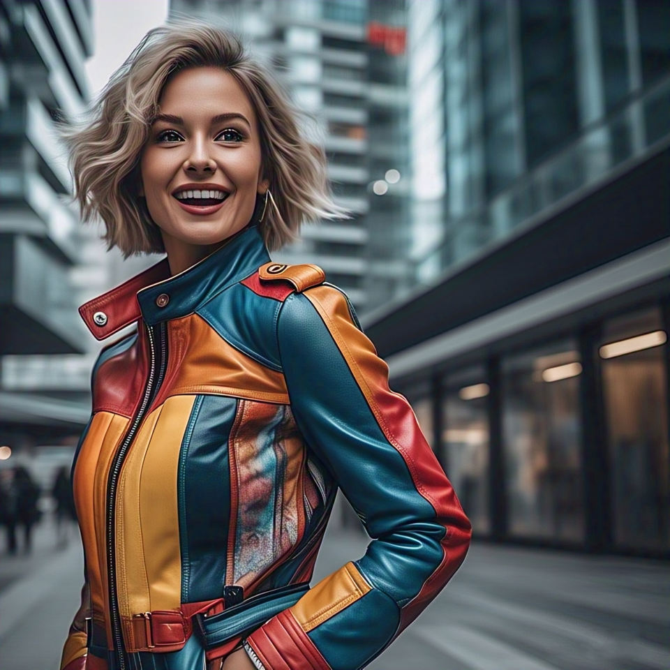 แจ็คเก็ตหนังผู้หญิงหลายแผง