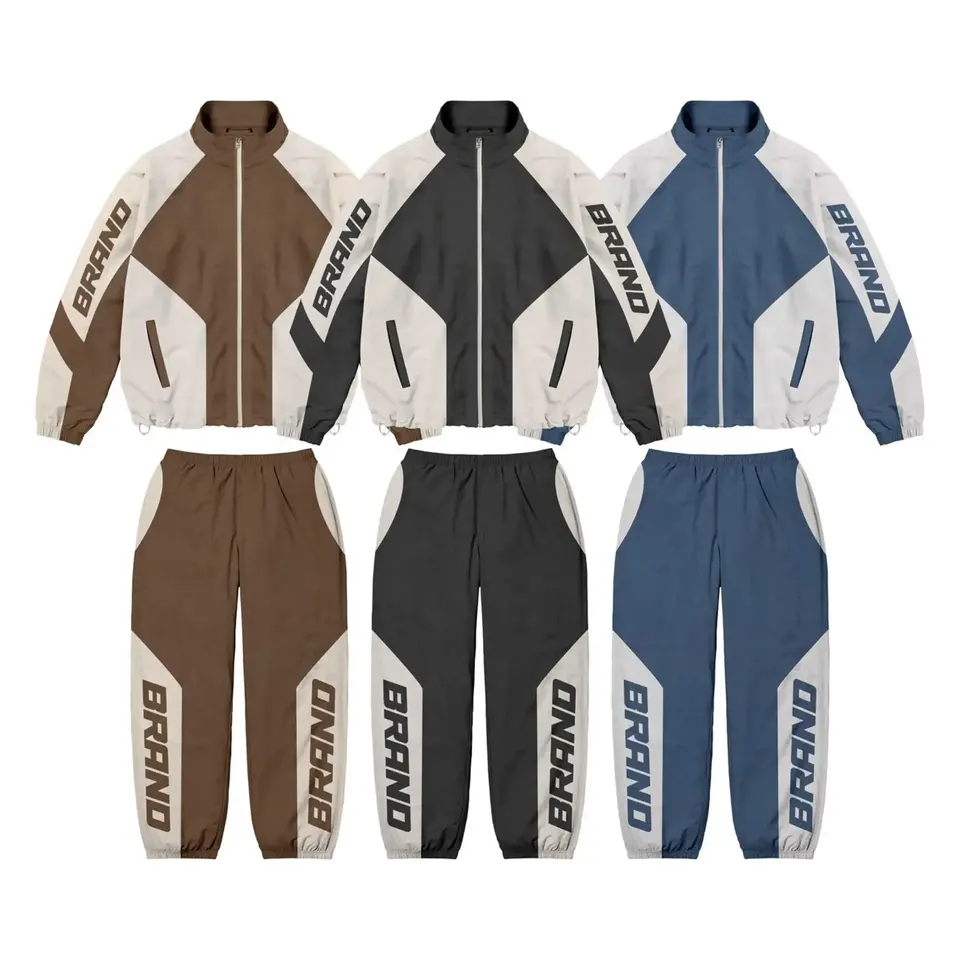 ชุดวอร์มไนลอนผู้ชายคุณภาพสูงแบบหลายชิ้น พร้อมกางเกงและเสื้อฮู้ด ผลิตตามสั่ง ขายส่ง ชุดกันลมไนลอนแบบยูนิเซ็กซ์