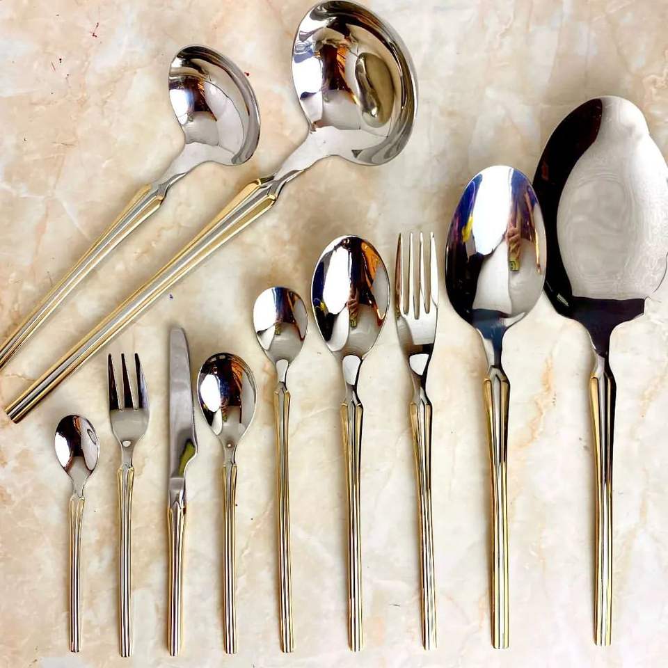 ชุดช้อนส้อมมีดโลหะสำหรับรับประทานอาหารแบบหลายชิ้น ครบชุด สำหรับครอบครัว