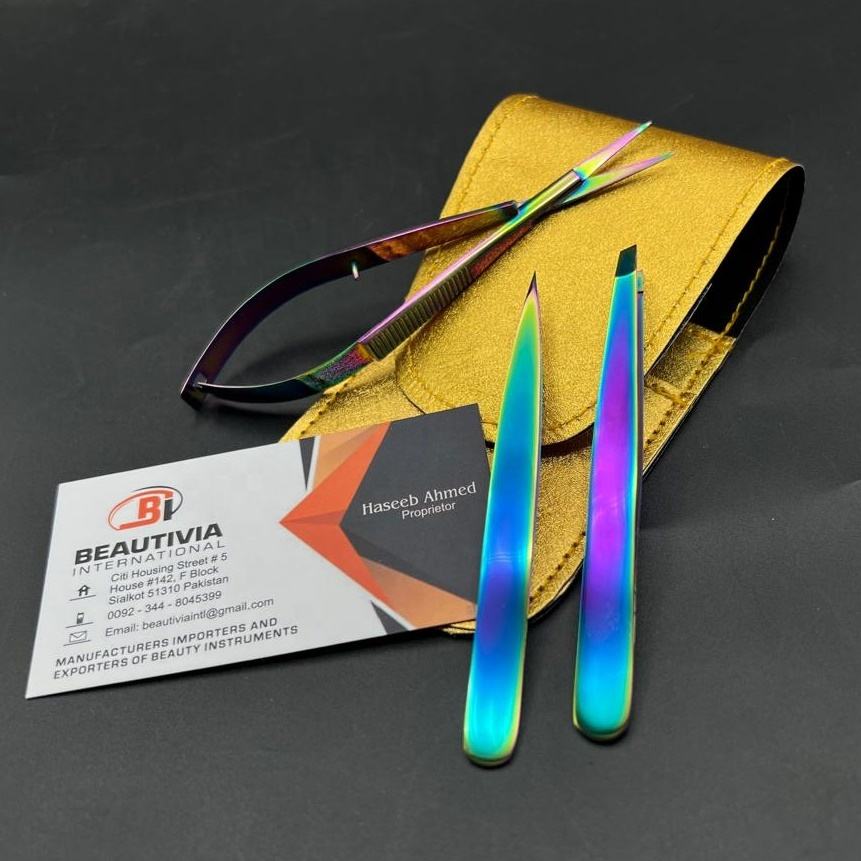 ชุดแหนบถอนขนคิ้วพลาสม่าแบบยั่งยืนพร้อมแหนบปลายแหลมในกระเป๋ากรรไกร
