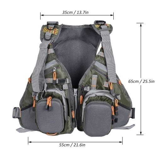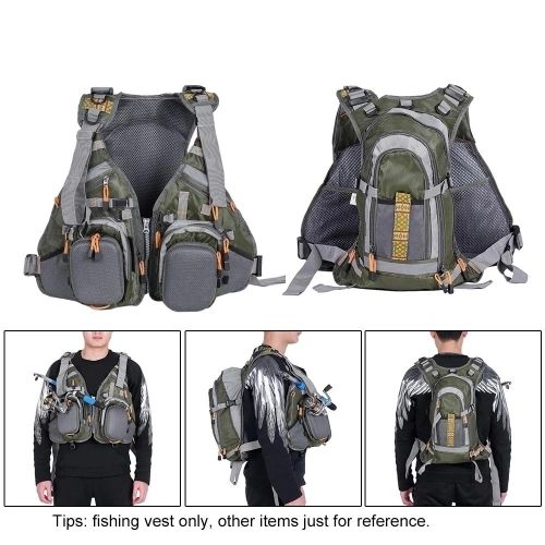 เสื้อกั๊กตกปลาหลายช่อง เสื้อกั๊กตกปลาแบบมัลติฟังก์ชั่น กระเป๋าคาดหน้าอก 7 ช่อง กระเป๋าเป้สะพายหลัง เสื้อผ้าที่สวมใส่สบายสำหรับนักตกปลา