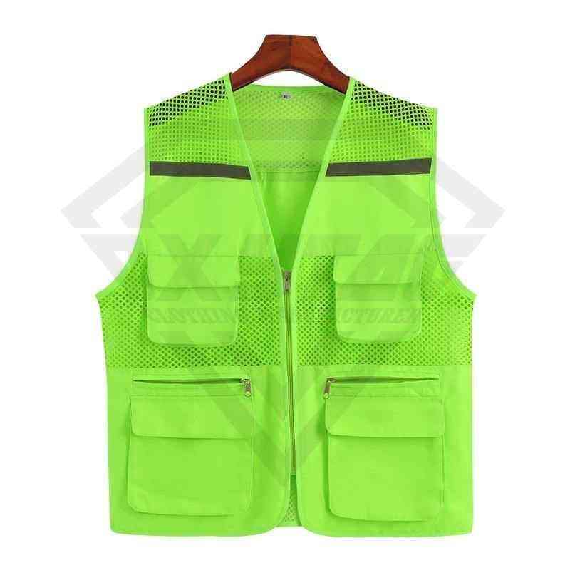 เสื้อกั๊กนิรภัยตาข่ายหลายกระเป๋า ระบายอากาศได้ดี ชุดทำงานสะท้อนแสงมองเห็นได้ชัดเจน ผู้ผลิตจำนวนมาก บริการ OEM แบบกำหนดเอง