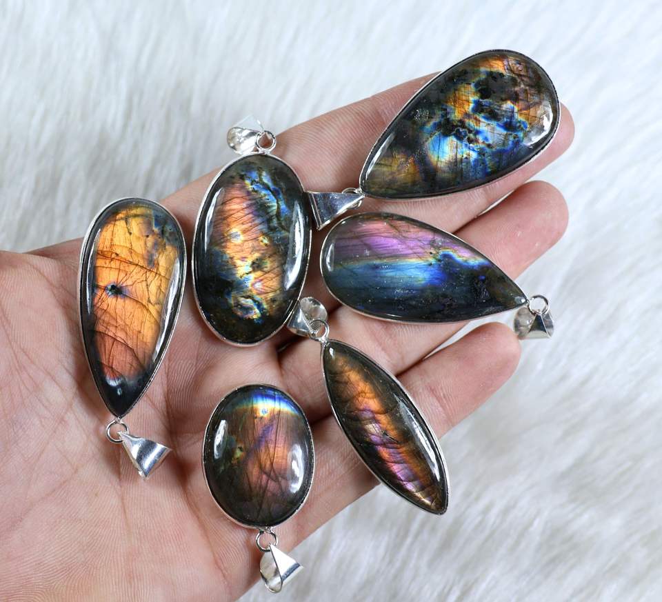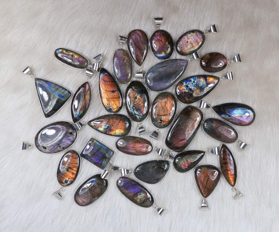 จี้อัญมณีลาบราดอไรต์สีม่วงหลายชิ้นสร้อยคอลาบราดอไรต์สีม่วงขายส่งสำหรับขายปลีก