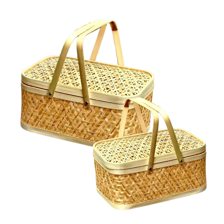 กระเช้าของขวัญไม้ไผ่อเนกประสงค์กระเช้าผลไม้กระเช้าผลไม้อย่างยั่งยืนปิกนิกที่นำกลับมาใช้ใหม่ได้เก็บของตกแต่งบ้านของขวัญสุดหรูและบรรจุภัณฑ์