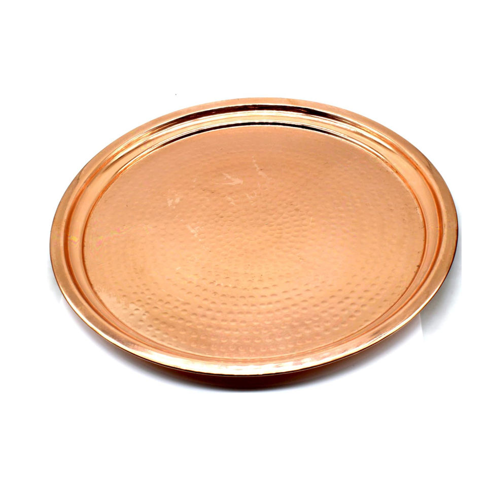 ถาดเสิร์ฟทองแดงตอกลายอเนกประสงค์ ขนาด 14 นิ้ว | ถาดอาหารตกแต่ง | เครื่องใช้บนโต๊ะอาหารทองแดงทำมือสำหรับบ้าน โรงแรม และร้านอาหาร