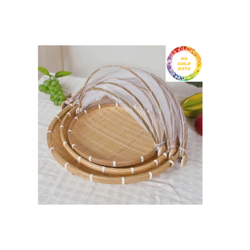 ตะกร้าทรงกลมถาดไม้ไผ่สานมืออเนกประสงค์สำหรับการให้บริการการจัดเก็บและการตกแต่ง