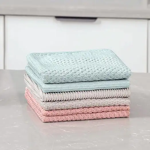 ผ้าไมโครไฟเบอร์อเนกประสงค์ ลายข้าวโพดและลายเส้น ขจัดคราบฝังแน่น ซักได้ ทนทาน ใช้เช็ดทำความสะอาดพื้นผิวเคาน์เตอร์