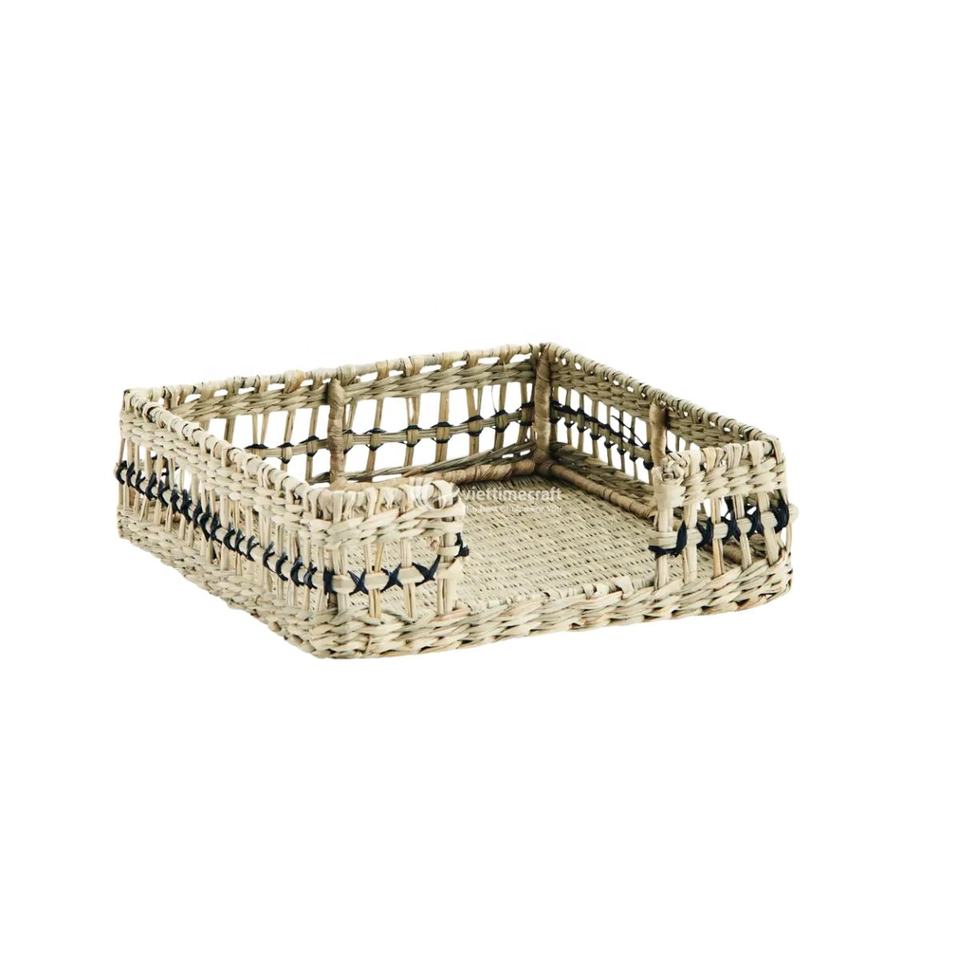 ที่ใส่ผ้าเช็ดปากจากหญ้าทะเลทอธรรมชาติอเนกประสงค์ ที่เก็บของบนโต๊ะอเนกประสงค์สำหรับตกแต่งห้องครัวและร้านอาหาร