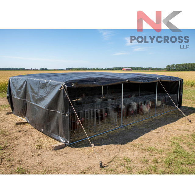 ผ้าใบกันน้ำอเนกประสงค์สำหรับป้องกันสัตว์ปีกคุณภาพสูง ผ้าใบคลุมฟาร์มไข่และที่พักปศุสัตว์ ขายในอินเดีย