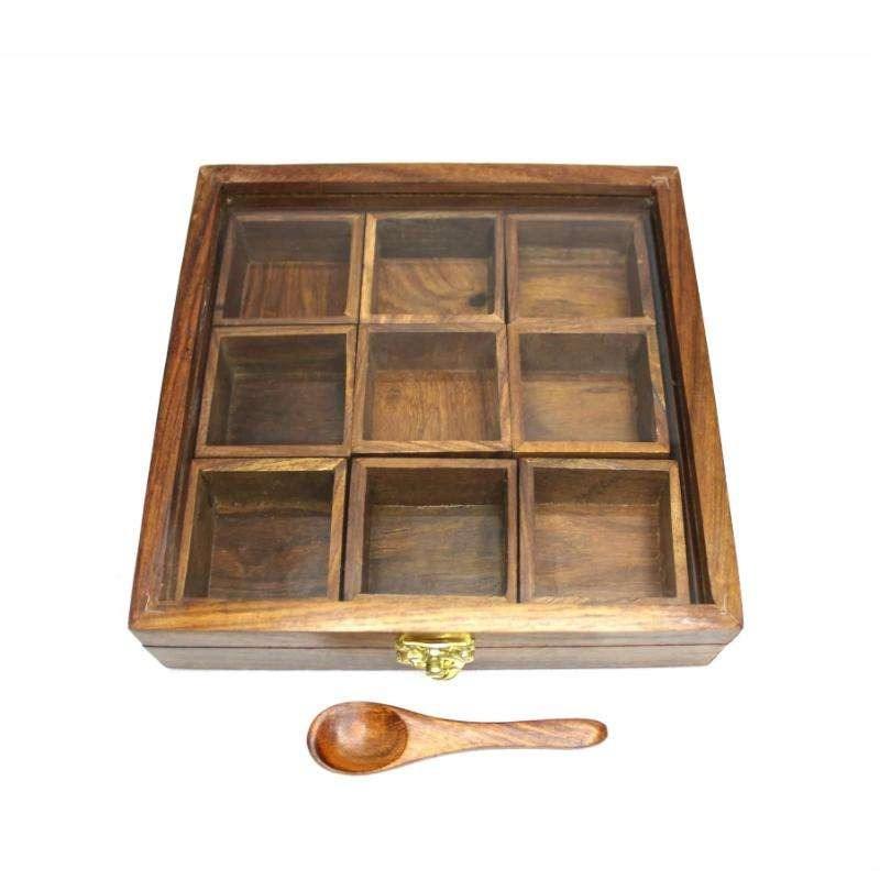 กล่องเก็บของอเนกประสงค์ทำจากไม้ สำหรับชา เครื่องเทศ และใช้ในครัว ผลิตในอินเดีย