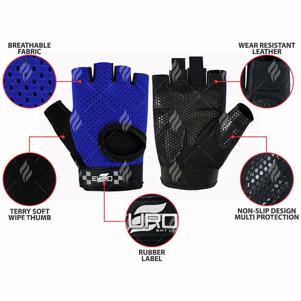 ถุงมือออกกำลังกายอเนกประสงค์ที่มีดีไซน์แบบครึ่งนิ้ว แผ่นรองเพิ่มการยึดเกาะ ยืดหยุ่นพอดี และสายรัดข้อมือที่สวมใส่สบาย