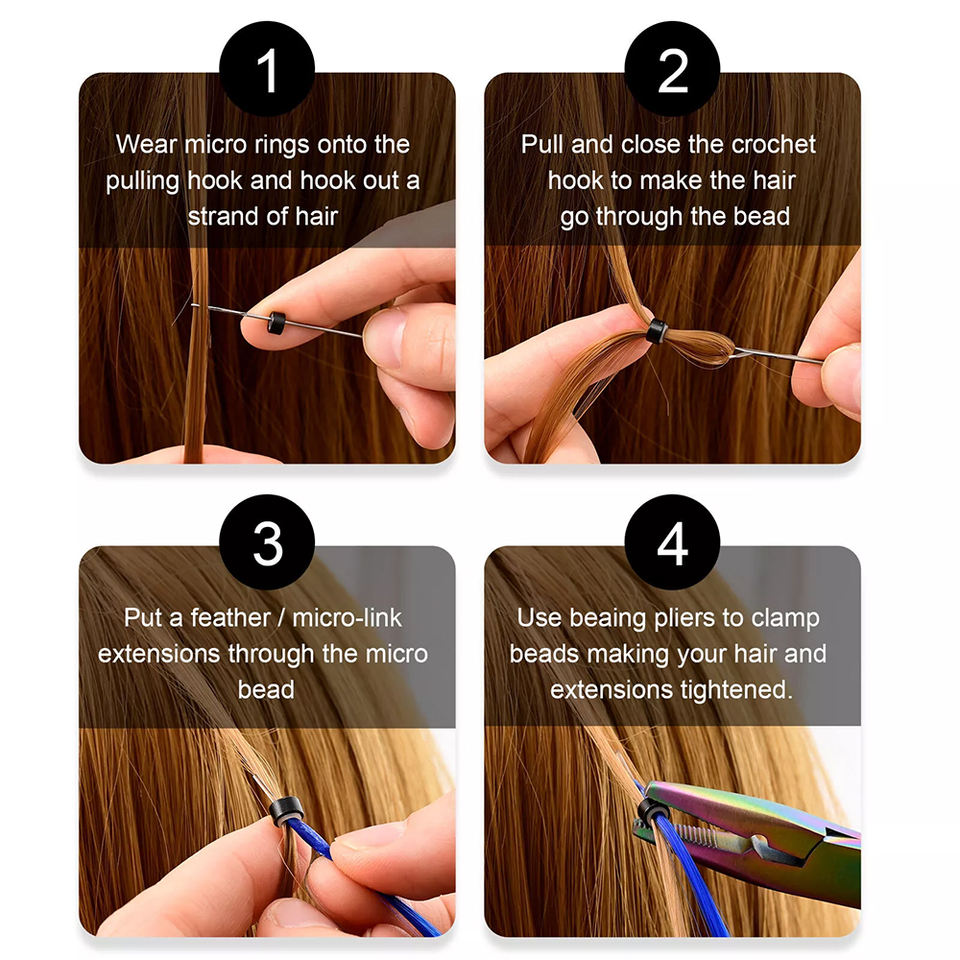 ชุดต่อผมสีรุ้งหลายสีชุดต่อผมสแตนเลส3ชิ้นพร้อมคีมและห่วงขนาดเล็ก