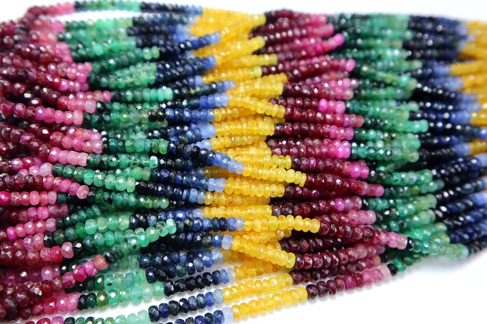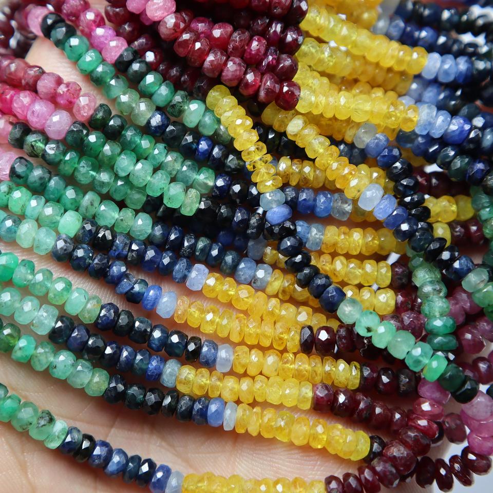 ลูกปัดแซฟไฟร์หลายเหลี่ยมเพชรพลอยลูกปัดแซฟไฟร์หลายเม็ดขนาด4มม. 16นิ้วสำหรับทำเครื่องประดับ