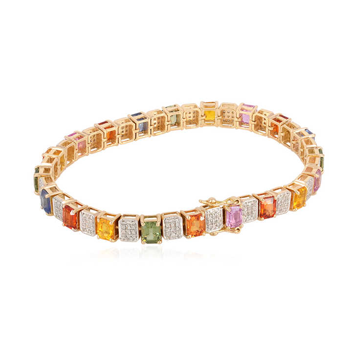 กำไลข้อมือเพชรแท้ทองคำ 14k ประดับพลอยแซฟไฟร์หลากสี ขายส่ง
