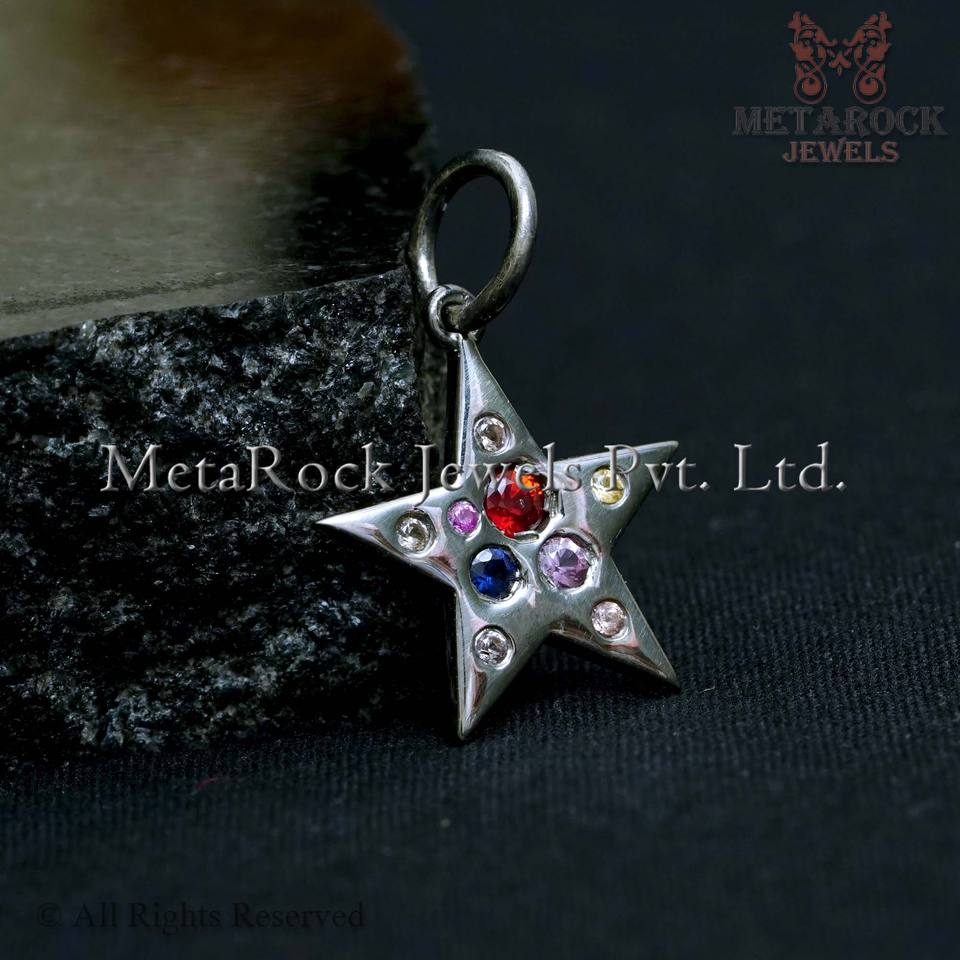 พลอยไพลินหลายออกซิไดซ์925เงินออกแบบดาวเสน่ห์จี้สร้อยคอเครื่องประดับ Unisex ขายส่ง