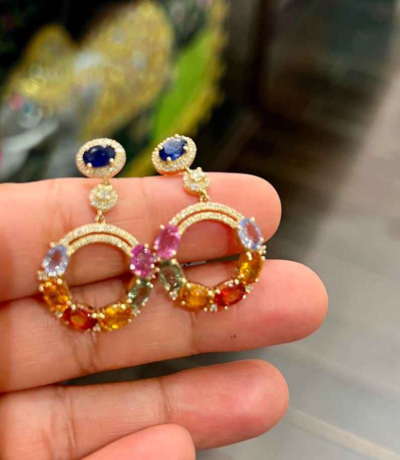 ต่างหูแฮนด์เมด ประดับด้วยไพลินสีน้ำเงินและเซอร์โคเนีย