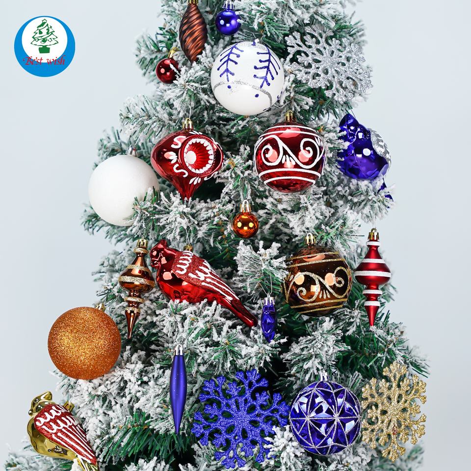 ชุดลูกบอลพลาสติกตกแต่งต้นคริสต์มาสที่มีสีสันหลายรูปทรงสำหรับตกแต่งบ้านนอกบ้าน