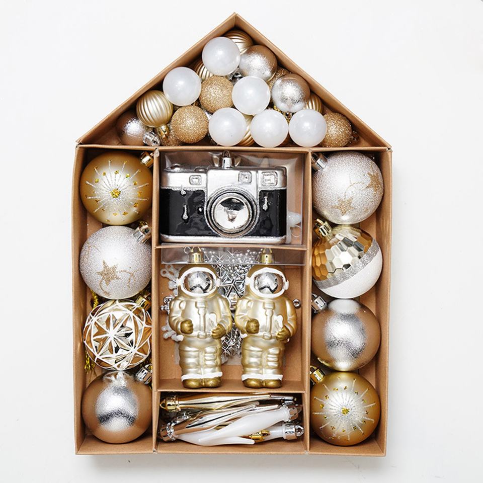 ชุดลูกบอลคริสต์มาสพลาสติกหลากสีสันรูปทรงต่างๆ สำหรับตกแต่งต้นไม้ในบ้านและนอกบ้าน