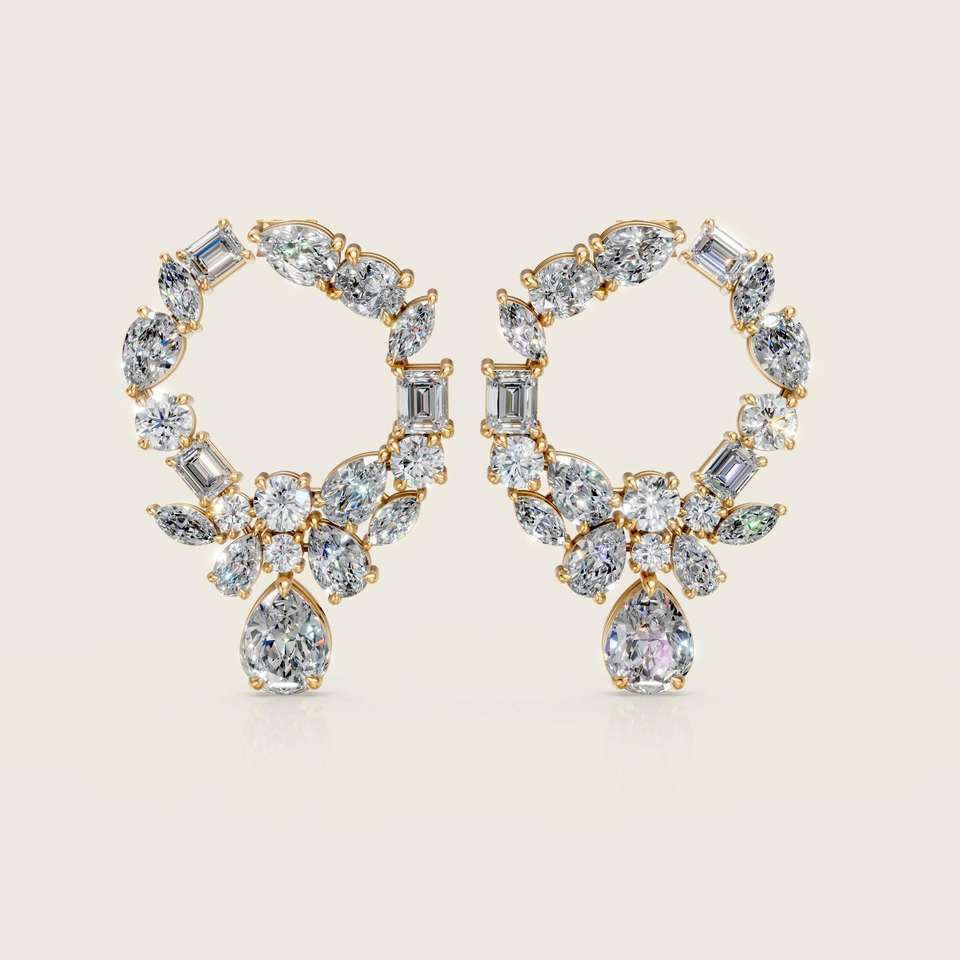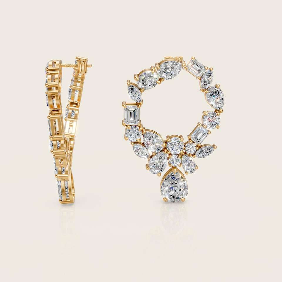 ต่างหูแบบติดหูทรงหลายเหลี่ยมประดับเพชรทรงดอกไม้ ดีไซน์เรียบหรู เหมาะสำหรับเป็นของขวัญงานแต่งงานสำหรับผู้หญิง เพชรเลี้ยงในห้องปฏิบัติการ ตัวเรือนทองคำบริสุทธิ์ 14K