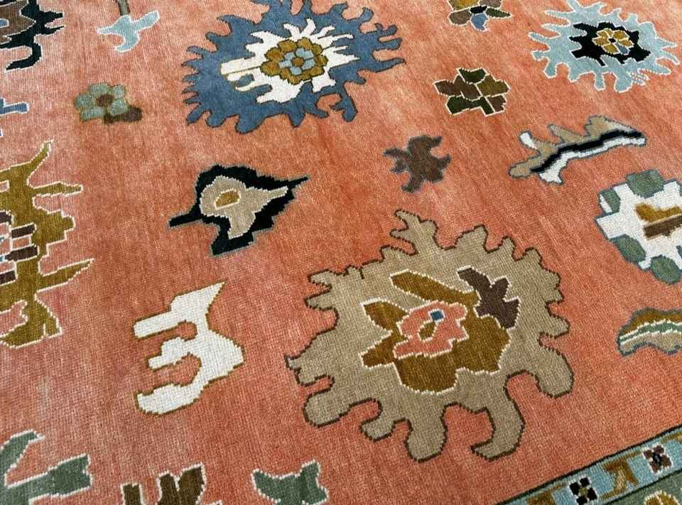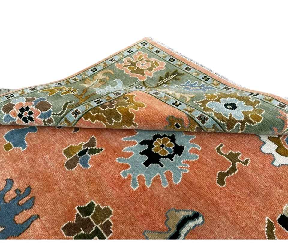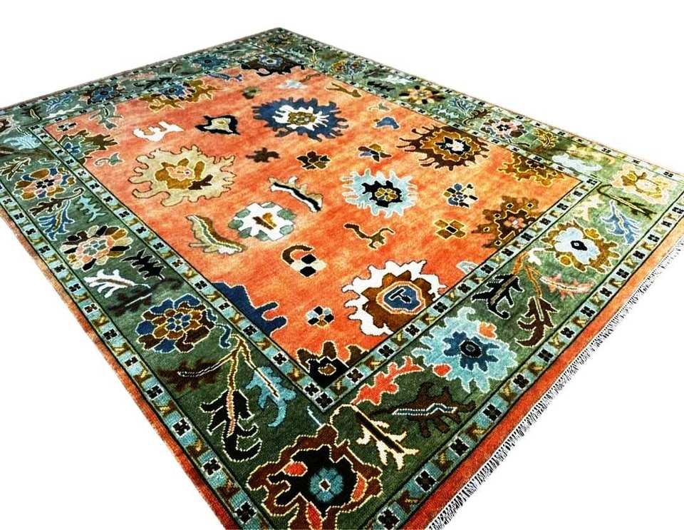 Custom Size Oushak Handknotted Rug:Cream Green Wool Rug Antique Handknitted Colorful