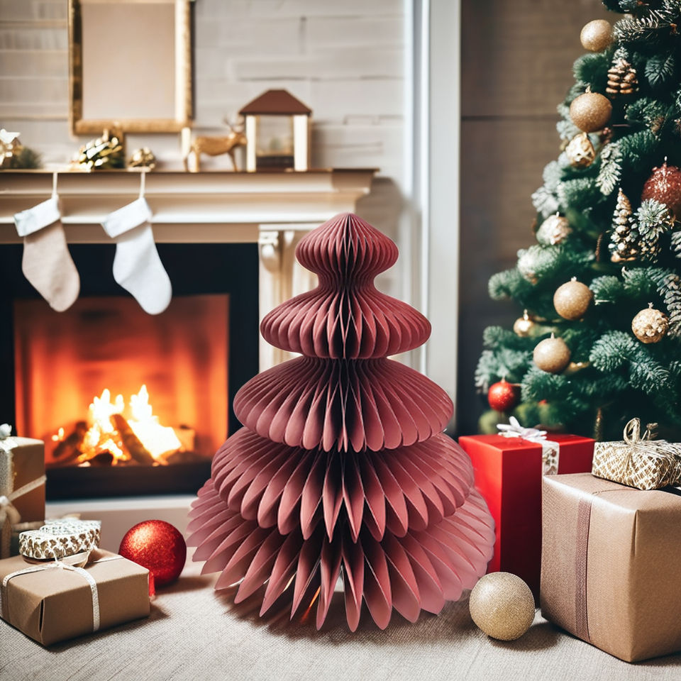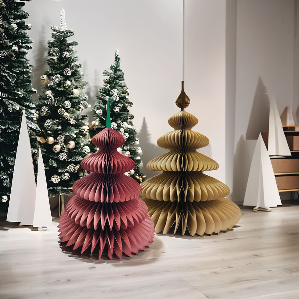 กระดาษพับได้หลายขนาดต้นคริสต์มาสเครื่องประดับตกแต่งในร่มที่สะดวก