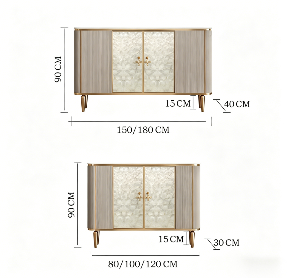 ตู้ไซด์บอร์ดหินอ่อนหลายขนาด, ตู้บุฟเฟ่ต์ลายเปลือกหอยทันสมัยพร้อมขาสีทอง, ตู้เก็บของสำหรับห้องนั่งเล่น