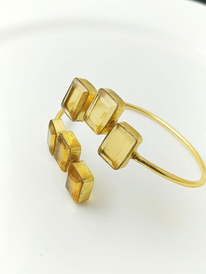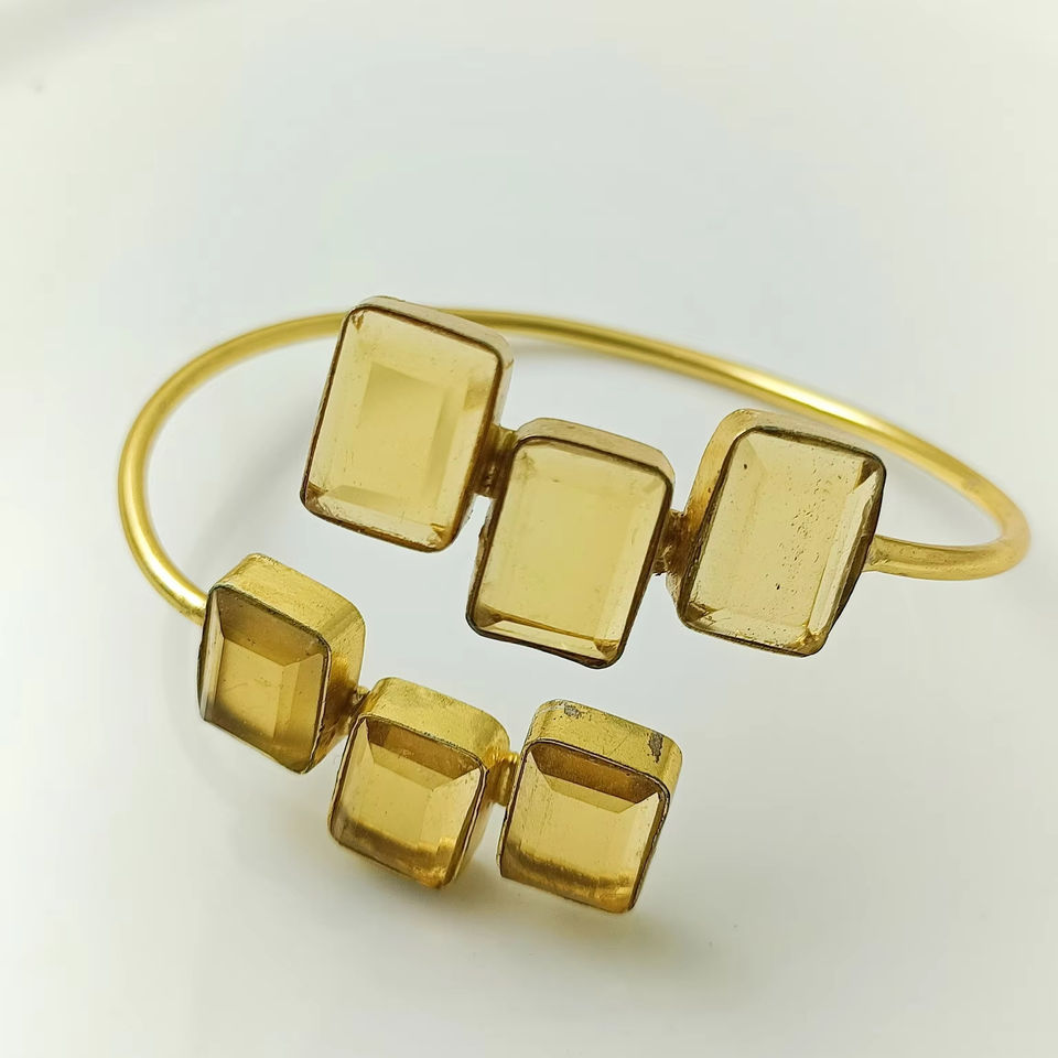 กำไลข้อมือพลอยสีชมพูแท้หลายชิ้นทำจากทองเหลืองชุบทองสองชั้น
