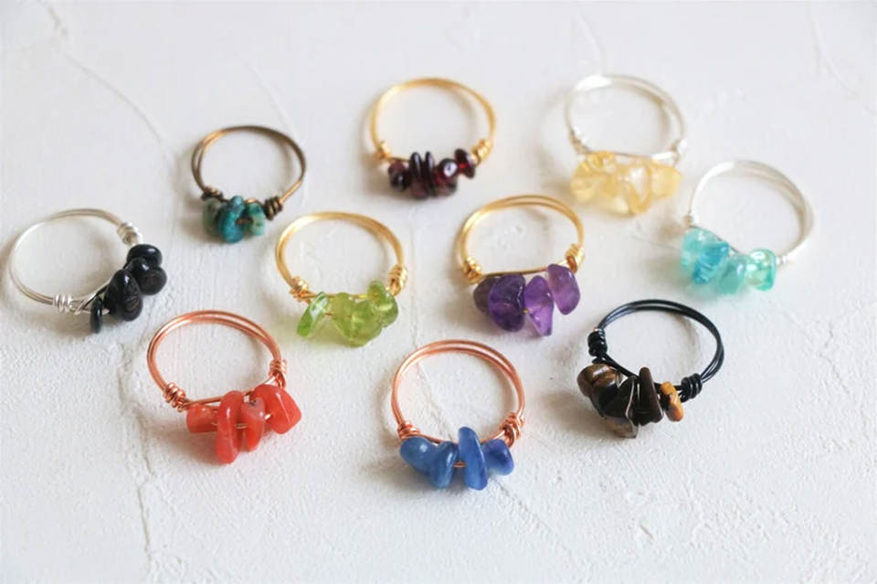 แหวนวงทองแดงผสมประดับพลอยหลายเม็ด-แหวนพลอยธรรมชาติขัดเงาแบบซ้อนได้-แหวนชุบแพลตตินั่มสไตล์โบโฮรับรองโดย IGI