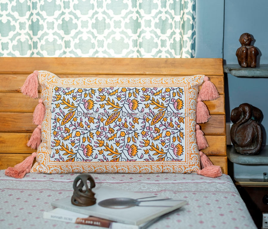 ปลอกหมอนอิงผ้าคอตตอนขนาด18X18ปลอกหมอนอิงพิมพ์ลายดอกไม้ประดับโบโฮ
