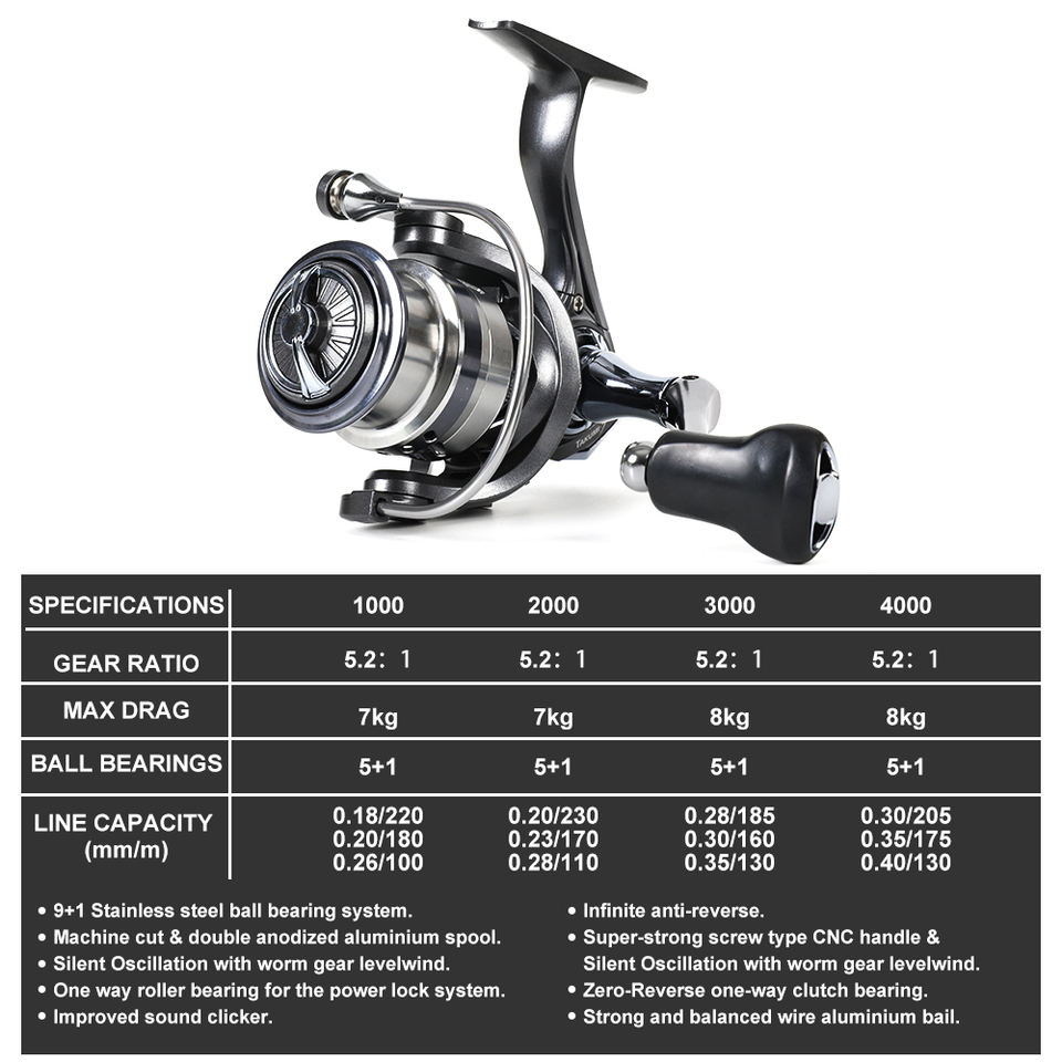 การปั่นด้าย, สปินคาสท์, เบ็ดขว้างแบบมือหมุน, หล่อ, ตกปลาเซิร์ฟ, ตัวนับบรรทัด, หลอก