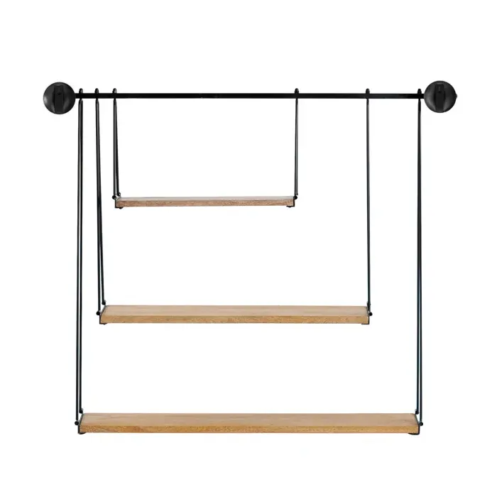 ชั้นวางของแบบติดผนัง,ชั้นวางของติดผนังกรอบโลหะสีดำหลายชั้นวางแบบโมเดิร์นสำหรับตกแต่ง