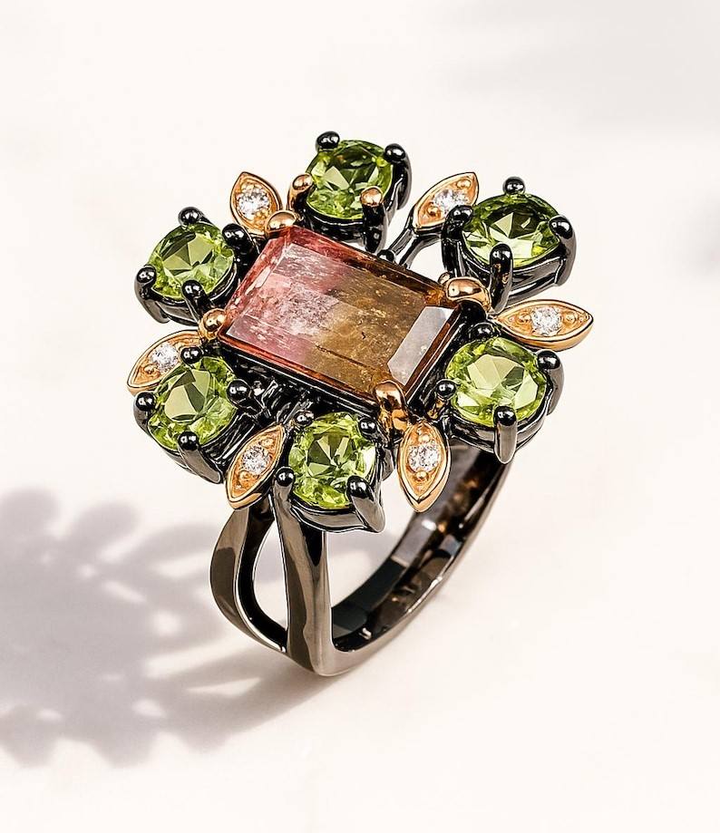 Keyword:Multi Tourmaline & Peridot Ring Crafted For Vibrant Nature Elegance